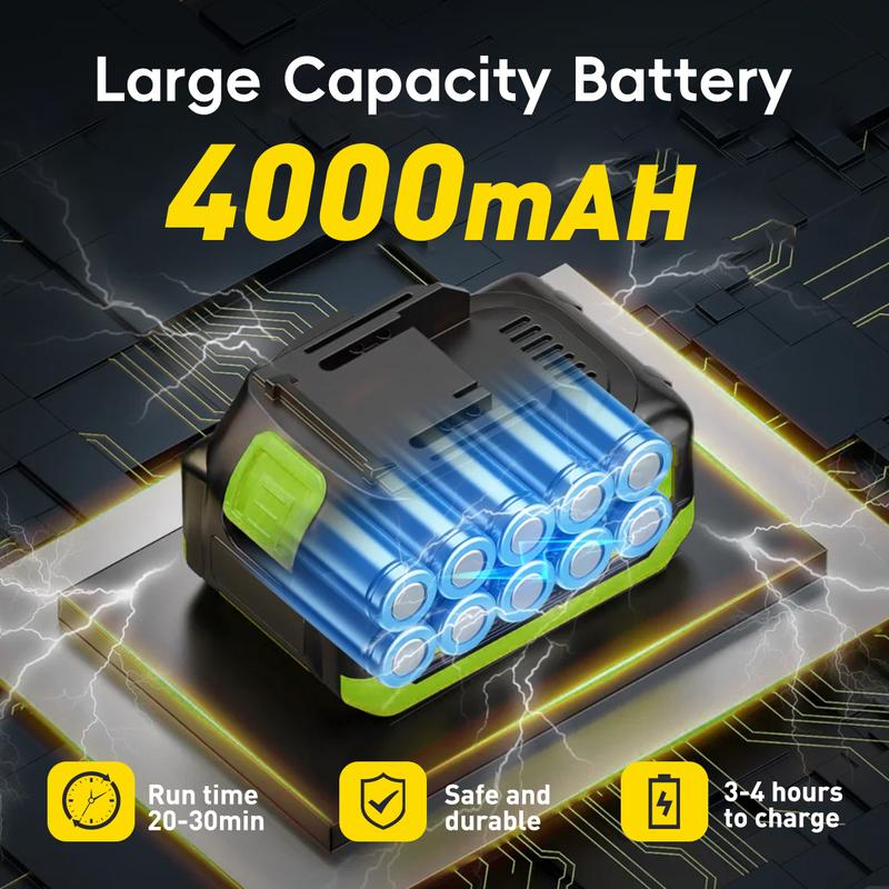 Powered by a high-capacity battery, this washer delivers up to 20–30 minutes of runtime per charge (varies by usage). Ideal for washing cars, patios, windows, and other everyday cleaning tasks without frequent recharging.